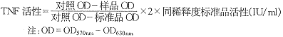 各实验组(B1~B6组)动物分别于术后0、0.5、2、4、6及8小时处死,对照组(A组)动物于术后8小时处死。然后在无菌条件下开腹,从下腔静脉采血2ml,血凝固后4 000r/min离心10分钟,取上清液-20℃保存。TNF测定采用传代细胞株L929生物活性法。按试剂说明书,TNF活性由下式算出: