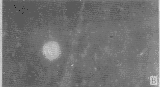B DNA细胞核碎裂为3块,×400 (孵育60分钟)