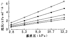 附表 不同(Q入)与P值时的流出量(Q出ml.h-1) P