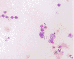 1.1.2 大鼠肺泡灌洗细胞 用平衡盐溶液经气管插管灌洗肺泡腔,收集灌洗液,离心后细胞涂片。