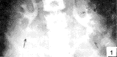 2.1.2 肾实质内多发结石:均为双侧对称改变,结石较小,一般为2~5mm,大的为8mm,为圆形、类圆形或不规则形,多呈簇状分布,或排列成扇形,位于肾锥体部。这种独特的X线征象,单凭平片就可提示MSK的可能,但确诊仍需作IVP。本组12例在双侧肾实质内均见多发性小结石(图1)。