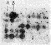 B:人型结核杆菌H.Rv DNA;其余斑点为初步筛选的转化子DNA