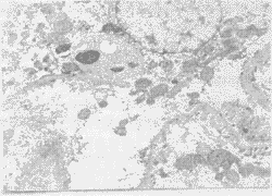 图1 ANP大鼠的肾组织电镜(×6000)肾细胞膜破裂,线粒体肿胀破裂,细胞器结构破坏。