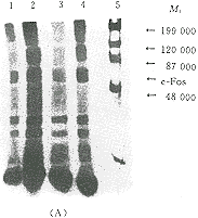 细胞c-Fos磷酸化测定 参照文献[6,7]的方法加以改良。最后从样品中取20 μl上清进行SDS-PAGE分析(5%积层胶,10%分离胶)。电泳结束后,进行染色、脱色及干燥,-70℃曝光2~3 d。以电泳带的黑度(经密度仪扫描测定)表示磷酸化的强度。