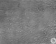 图2 a 示正常对照细胞 b、c 为原药浓度作用30min、60min后对MEK细胞生长的情况 ×160
