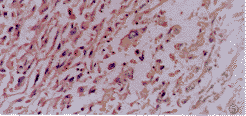 , http://www.100md.com 前列腺表面结节状,质较软,切面灰红~红褐色,部分区呈胶冻状。瘤细胞密集区和瘤细胞稀少的幼稚粘液样区交织,瘤细胞多形性明显,呈梭形、圆形、带状、蝌蚪状等,排列呈腺泡状结构。