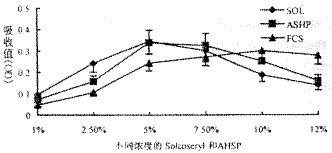2.1 不同浓度的Solcoseryl和AHSP对伤口修复细胞增殖作用的影响:由图1.2可知,当Solcoseryl和AHSP的浓度低于7%时,其对伤口修复细胞和人离体培养的表皮细胞的增殖能力随浓度增加而增强,与相应浓度的小牛血清对照组相比均有不同程度的差异,以浓度为5%时最为明显。浓度为5%时,Solcoseryl组、AHSP组的OD值明显高于对照组,P<0.01,而Solcoseryl组、AHSP组之间虽绝对值有差异,但无统计学意义。浓度为5%的Solcoseryl和AHSP与10%的小牛血清对照组相比无明显差异(P>0.05)。Solcoseryl和AHSP的浓度为5%~7%时,曲线变化较为平缓,当浓度上升为10~12%时,出现抑制现象,与相应浓度的小牛血清对照组相比有明显差异,提示高浓度的Solcoseryl和AHSP可抑制伤口修复细胞和人表皮细胞的生长。