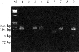 Figure 1 Electrophoresis of PCR for HGV RNA by primers from different region of HGV genome