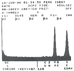 切取6例经临床及病理诊断为OSF患者的病变区颊粘膜及6例无OSF的正常口腔颊粘膜标本(1mm×1mm×1mm)2块,用2.5%戊二醛固定,常规透射电镜制样, 超薄切片,铅铀双染色,透射电镜下预检。再切 取1000A厚超薄切片,金网捞片,不经铅铀染色,直接在透射电镜及EDAX9000型能谱仪(H-800型,日本日立公司产)下定位及扫描。每个标本制成2个金网,每个金网测试1~2个区域,每个区域测试基底层细胞,扫描面积为3μm×3μm,收谱时间为350s。检获元素经电子计算机自动扣除本底含量后,得出质量百分比,经平方根反正弦变换后,用x±s表示。采用t检验。
