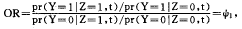 其中Y(0,1)为二元变量,Y=1表示为病例,Y=0为对照。式中分子部分为病例的暴露率的比值(odd),分母部分为对照的暴露率的比值,两个比值的比(odds ratio)即为比数比。上式表明,比数比等于相对危险度,或者说比数比是相对危险度的无偏估计。但是对照的选择必须满足下列条件,第一是时间配对,第二是按随机的原则,第三是对照是从时刻t时所有临危研究个体(危险集)中选择的,无论他已是病例还是已被选为对照的正常个体。