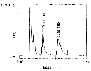 Fig.2 Serum sample chromatogram 2.13m in: Tyr; 3.58min: Phe