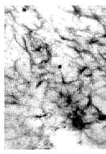 本实验模型为破坏性损伤,刺激强烈,实验结果显 示较广泛的胶质化和胶质瘢痕形成。在此模型基础 上局部给予重组CNTF,发现胶质化明显增强,即GFAP免疫组化染色时,伤道附近星形胶质细胞数目增加,细胞胞体增大,突起变粗大且延长,免疫染色加深 。这与以前报道的结论一致[5]。CNTF为神经营养因子,具有神经营养作用。但在胶质化过程中,我们的实 验表明它也具有促进胶质化的作用,表现为典型的 星形胶质细胞肥大和增生,后期形成胶质瘢痕。