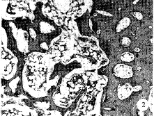 4个半月 复合骨组与3个月时表现类似,珊瑚都已吸收,骨组织钙化程度较高,多见骨髓腔,骨小梁增粗,与种植体间为骨界面;单纯珊瑚组,珊瑚都已吸收,形成的骨组织钙化程度较高,与种植体界面是骨界面;自体骨组与3个月类似,所有移植物与骨床间均未见软组织;空白对照组仅见软组织形成。