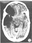 19例(20.4%),各脑池均闭塞,中脑呈密度减低或严重变形,低密度改变可能与脑池基底动脉受压使中脑缺血有关。主要病变发生于一侧半球巨大血肿,出血量100ml以上,或两侧大脑半球广泛挫伤,同时注意到6例无中线移位的病例均属此类。