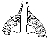 (4)术毕软腭获充分延长,且略有上抬,鼻咽侧壁亦略向内收拢,使鼻咽腔明显缩小,术后早期患者均有不同程度的打鼾过程,严重者可出现轻度呼吸困难,这些症状一般可随术后组织水肿的消退而消失,但术后早期仍应严密监视患者呼吸情况,尤其对麻醉拔管后的婴幼儿,最好在其舌体缝以粗丝线,将舌体前牵固定,以保证呼吸道通畅。