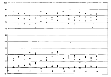 ◆:颈部L; ■:颈部a; ▲: 颈部b; ×:体部L; ※:体部a; ●:体部b; +:切端L; -:切端a;—: 切端b.