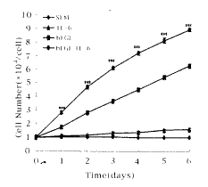 图2 (Figure 2)显示IL-6和bFGF均能增加VSMC数目,且呈时效关系,说明IL-6和bFGF促进VSMC增殖在1周内具有时间依赖性 。同时发现bFGF 较IL-6促增殖作用更为明显,而且两者具有协同作用(P<0.001)。