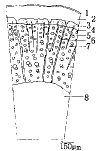 1.气孔 2.薄壁细胞 3.表皮细胞 4.木栓组织 5.纤维
