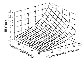 本文所采用的仿真模型已经人体实验所验证[3],而且一些仿真结果与临床观察结果相符[8,9]。因此,我们认为,本文的仿真结果真实地反映了立位应激时心血管系统的反应与失血之间的变化关系。