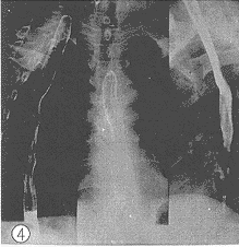图1 食管上段癌放射治疗后2d摄片,病灶5cm长虫蚀样破坏