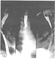 图3 食管中段癌示龛影及破坏
