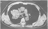 化疗药物的疗效与其血药浓度及(或)用药持续时间成正比,而化疗药物的毒副作用限制了药物大剂量、长疗程地持续应用,不仅明显降低患者的生活质量,而且使现有的化疗方案不得不在两个疗程之间停息一段时间,以便让患者有一段恢复的时期。但此时的肿瘤细胞也会得到一个恢复的机会,肿瘤的耐药细胞亦会不断增多。最佳的治疗方案是在高浓度、长疗程持续治疗下,最大限度地杀灭肿瘤细胞的同时,尽可能降低或避免药物的毒副作用。局部用药是达到这一目标的主要手段,但由于肺脏是一个疏松而含气的脏器,局部用药一直是一大难题。我们通过CT导引下经皮肺肿瘤局部置管微泵化疗方法,基本达到了这一目的。2例患者经局部灌注化疗后,肿瘤体积均显著缩小。