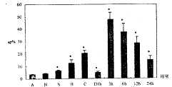 1.2 实验设计 N组只做1%戊巴比妥钠麻醉及颈外静脉、颈总动脉插管,术后拔管及结扎血管。S组麻醉及插管后,自动脉放血致血压降至5.3~6.6 kPa,维持1 h后自静脉回输所放的血,并加输生理盐水4 ml,拔管。B组在放血前用特制夹钳夹双侧股骨至骨折,余同S组。C组夹双侧股骨+双侧胫腓骨。N、S、B、C组均于复苏后6 h自后腔静脉放血处死。D组夹双侧股骨+双侧胫腓骨+双侧肱骨,在复苏后5个时间点同法处死。