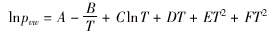 式中,l为相变潜热,ν(l)、ν(ν)为水和水蒸汽的比容。根据它们与温度、压力的关系,可以得到: (9)