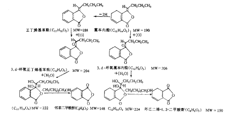 表2 藁本内酯异构化产物成分的GC-MS分析结果 化物名称