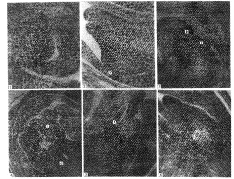 1-示芽原基 2-示花原基(a-花被片原基) 3-示花原基(b-雄蕊原 基 c-雌蕊原基) 4-示发育成熟雄蕊、雌蕊(d-子房
