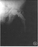 (四)假体断裂:随着人工关节设计的不断完善及假体材料学的发展,真正由于假体本身原因造成的人工关节置换手术失败已不多见。在本组病例中,有2例出现假体股骨柄断裂,分析原因是由于股骨假体本身已出现松动,长期摆动后造成疲劳性断裂。