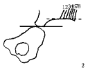 将复位前后各时期髋关节正位X线处通过ARcusⅡ扫描仪输入计算机。分辨率120bpi,扫描比例100%,以JPG格式存储,利用photoshop5.0软件显示髋臼边缘,输入AUTOCAD软件,利用该软件多义线描绘出髋臼边缘,以三角软骨中点为原点,以两侧髋三角软骨中点连线(设为X线)为横坐标。