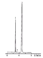 精密称取原料药适量,制成0.2 mg.mL-1的溶液,精密量取4.0 mL,加内标溶液2.0 mL,加流动相稀释至20 mL,以“4.2”项下溶液为对照品溶液,按内标法计算,即得。结果测定样品3批,含量分别为99.85%,100.2%,100.1%,(n=3)。