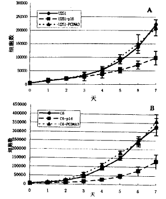 图1A p16基因表达对脑胶质瘤细胞系U251生长的影响