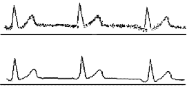 体外反搏提高舒张压,恢复缺血组织的活性功能,有着显著的临床疗效,但对一些心血管病变必须禁止使用以防危及病人健康。实施体外反搏通常的控制方法是:运用TLV技术,通过不断比较检出QRS波,计算出心动周期,根据经验公式计算QT时间,根据平均的QT时间去设定充排气时序以实施体外反搏,同时推断各种早搏和心律失常信号以防止将干扰和各种早搏信号以及其他一些心律失常信号误检为可以实施反搏的正常心动周期的QRS,从而导致误触发反搏装置工作。体外反搏治疗在各种早搏信号以及心律失常信号出现期间应中止,否则会影响反搏效果。本文研究的方法是:采用子波多尺度分析离线处理心电信号,提取QT时间作为一个动态跟踪标准,结合TLV技术去识别各种正常心电信号、早搏信号以及心律失常信号,在各种早搏信号以及心律失常信号出现其间应中止反搏治疗,待信号恢复正常再实施反搏。我们从MIT数据库中选取了以下三组心电信号: