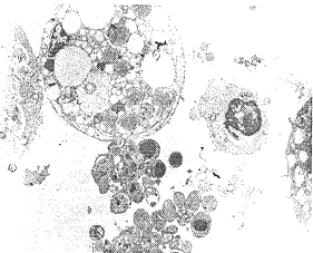 Fig3 Transmission electron microscopy revealed that he-patochlangioma cell had finished apoptosis(programmed cell death)(×7600)\ezt, http://www.100md.com