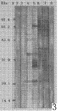 目前,有关血吸虫AWA的Western blot分析,在国内外均有较多报道,各家报道结果虽有所不同,但研究的焦点仍在几个重要的分子上,如AWA31/32kDa、26/28kDa、97kDa等。AWA31/32kDa分子在血吸虫病的诊断方面占有瞩目的地位,其具有血吸虫虫种特异性,可用于诊断曼氏、日本和埃及三种血吸虫病。Sm31/32kDa和Sj32kDa均已重组表达成功。Ruppel A.等(1985)曾报道SmAWA31kDa能被感染后4周小鼠血清所识别。曾庆仁等(1992)研究证实SjAWA31kDa有一定的早期诊断意义。本研究发现SjAWA34kDa分子能与感染4周后兔血清出现强反应带,是具有良好早期诊断价值的靶抗原,并经多次实验结果证实AWA34kDa分子有着非常好的重复性与特异性,且免疫反应性很强,类似上述优势诊断蛋白AWA31/32kDa分子。Evengard B.等(1990)发现针对IgG1的Sm AWA 32kDa~35kDa可作为血吸虫早期感染的标志。Mikhail M.M.等(1997)报道,Sm AWA 31/32kDa、34/35kDa分子能被2周、3周感染鼠血清所识别。这些实验结果很相似却又不尽相同,即无论是在曼氏血吸虫还是在日本血吸虫,AWA31kDa~35kDa分子区间存在着1~2个早期诊断优势抗原,但两个虫种间的早期抗原是否一致?不同实验室报道的抗原分子量差异,是由于实验条件的差异所致,还是由于抗原本身的不同?均有待进一步的实验研究证实。