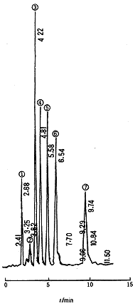 色谱柱:Zorbax C18柱,4.6mm i.d.×250mm;流动相:甲醇+水=80+20;流速:1.0ml/min;柱温:室温;检测波长254nm;灵敏度:0.02AUFS。