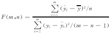 式中m为数据组数, m, n为F的自由度,此处n=2。式中yt为测量值,y为y t的平均值,
