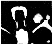 按Danziger等的分期法[7],将本病分为3期,其无眼球壁破坏的为Ⅰ期(眼内期),仅局限于眼球内,有眼球壁破坏,但局限于眼眶内的为Ⅱ期(眶内期),突出于眶外者则为Ⅲ期(眶外期)。本组病例10例为Ⅰ期即眼内期,1例为Ⅲ期即眶外期。因此对本病的早期诊断尤为重要,避免出现Ⅱ期和Ⅲ期,即眶内期和向颅内蔓延所带来的不良预后,同时对临床决定手术方案也具有极其重要的意义。本文认为CT上出现:①眼球突出;②有境界清楚的眼球壁上软组织密度肿块;③有团块状钙化的典型CT表现诊断本病并不困难。