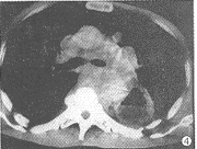 判断心包或肺动脉受侵时,应在与肿瘤临界段作2~5mm的薄层扫描,以减少心包弧形后缘容积效应的影响。当心包和肺动脉受侵时,可见它们与肿瘤相连,甚至被肿块浸润包绕。