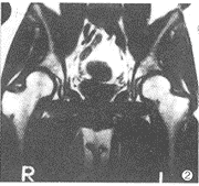 使用Elscint公司生产的Gyrex-V DLX型0.5T超导磁共振成像仪。所有病例均作腰骶椎矢状面和髂骨、股骨近段冠状面扫描。腰椎采用表面线圈作矢状面T1WI(TR 450ms/TE 20ms,TR 700ms/TE 20ms)、T2WI(TR 3600ms/TE 80ms);骨盆(包括双股骨上段)用体部线圈作冠状面T1WI(TR 450ms、TE 20ms,TR 700ms、TE 20ms)、T2WI(TR 3600ms,TE 80ms),层厚5mm,层距1mm,矩阵180×256。