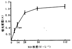 检测的影响 按图1分组,结果显示:A值随XO浓度的上升而迅速增加,但当XO浓度增到28 U.L-1后曲线趋于平稳。