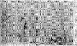 图4:用明胶海绵条栓塞后肿瘤血管、肿瘤染色消失