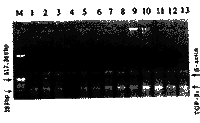 M:pBR322/Hinf I Marker; 1-13:RT-PCR产物
