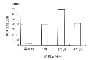 通过对支气管肺泡灌洗液细胞成分免疫化学分析表明,照射后的灌洗液中巨噬细胞对TGFβ表达增强的时间出现得最早,于第1周即有较强的表达,这或许说明巨噬细胞是照射后最早出现TGFβ表达的,表达的微量TGFβ又可作为已知的巨噬细胞最强的化学趋化因子吸引巨噬细胞到损伤位点;在合成的较高的TGFβ浓度下,它增强巨噬细胞对其他的生长因子及TGFβ自身的合成,灭活巨噬细胞产生能破坏新生成纤维细胞的过氧化氢的能力;同时,TGFβ也可作为成纤维细胞的重要趋化因子和促分裂与分化(合成基质)因子发挥作用。
