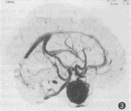 图3 同上,矢状面可见动脉瘤瘤蒂