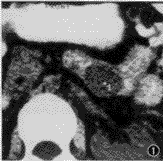 中华放射学杂志000723 患者 女,41岁。上腹隐痛不适伴恶心呕吐6个月。右下腹轻压痛,无反跳痛。口服2%泛影葡胺溶液1 000 ml后行CT平扫,示胃窦后壁有一向腔内隆起的类圆形软组织密度肿块,CT值33~44 HU,直径约2.5 cm,边缘清晰光滑。在空肠也见一向腔内隆起的卵圆形软组织密度肿块,CT值35.9 HU,直径约3 cm,边缘光滑(图1,2)。CT诊断为胃窦后壁和空肠肿瘤,平滑肌瘤可能性大。