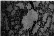 肺曲菌病7例;恶性组织细胞增生并肺曲菌病1例;肺及回肠曲菌病1例;亚急性细菌性心内膜炎1例。实验室及辅助检查:除支持败血症、肺炎、心内膜炎等外,未发现特殊阳性情况。曲菌病感染后肺组织变化见图1、2。