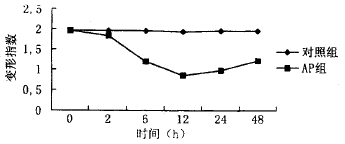 红细胞的聚集性对低切变率血液粘度起决定作用,而红细胞变形性则影响着高切变率血液粘度。红细胞良好的变形性,赋予了正常红细胞在流场中随流线取向,也是红细胞膜能围绕质内容物以“坦克履带”样作缓慢旋转运动,从而减少血液内摩擦力,降低血液表观粘度。红细胞聚集指数增高,在毛细血管、微静脉、小静脉中,红细胞趋于聚集相,血液粘度增加,缺血缺氧的组织细胞中酸性代谢产物增加,从而使红细胞变形能力降低,一旦红细胞变形性下降,则使得红细胞聚集相增加,血液流动性下降而粘度增高,进而形成恶性循环[5,6]。AP组红细胞的聚集指数和变形指数从造模后2h和6h就有明显的改变(与造模前相比P<0.05)。显示红细胞变形性的降低和聚集性的升高造成血液流动性下降而粘度增高,从而加重胰腺的病理改变。